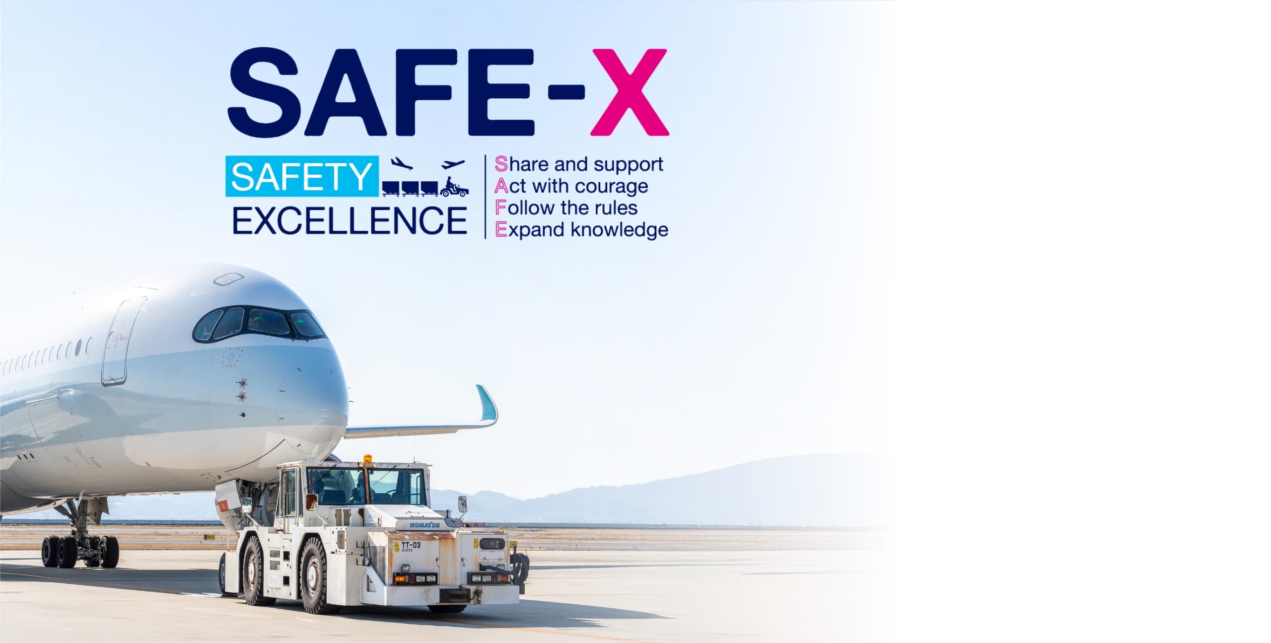We, as a member of Kansai Airports Group,are committed to making safety our top priority.Each of us strives to achieve the highest standards of safety [Safety Excellence “SAFE-X”]by acting in accordance with the following principles: