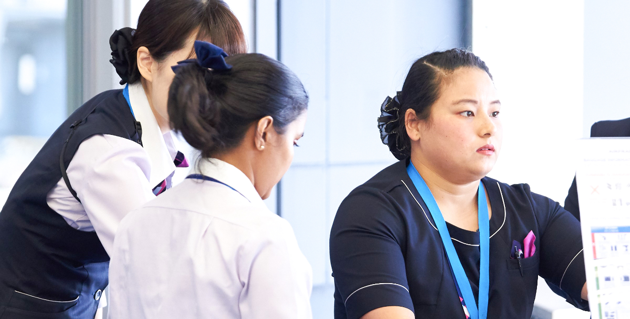 チェックインシステムを習いだした頃に、3レター(それぞれ空港を表す3つのアルファベット)とその国の名前を覚えることが大変でした。またトレーニングの時に、チェックをミスしたことがあり報告書を書いたことも忘れられません。